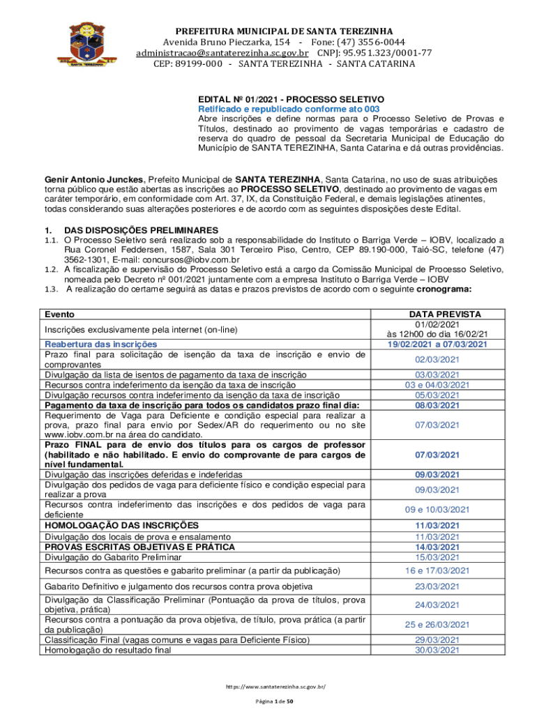 CEP: 89199000 SANTA TERESINA SANTA CATARINAEDITAL