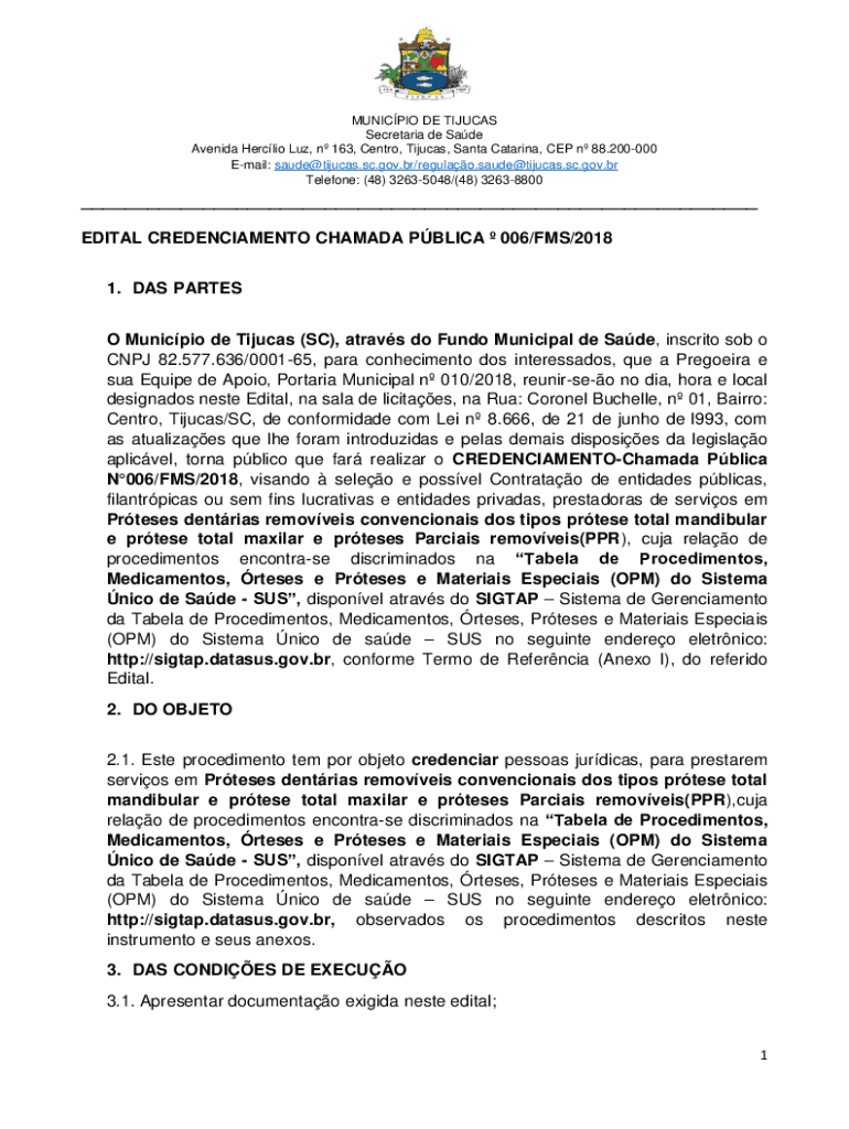 Email: saude@tijucas.sc.gov.br/regulao.saude@tijucas.sc.gov.br
