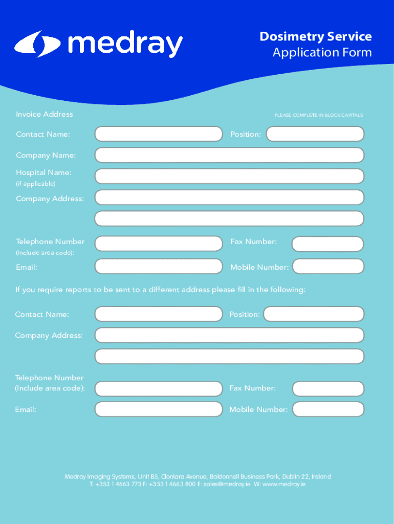 Get the free Dosimetry Service Application Form - Dublin