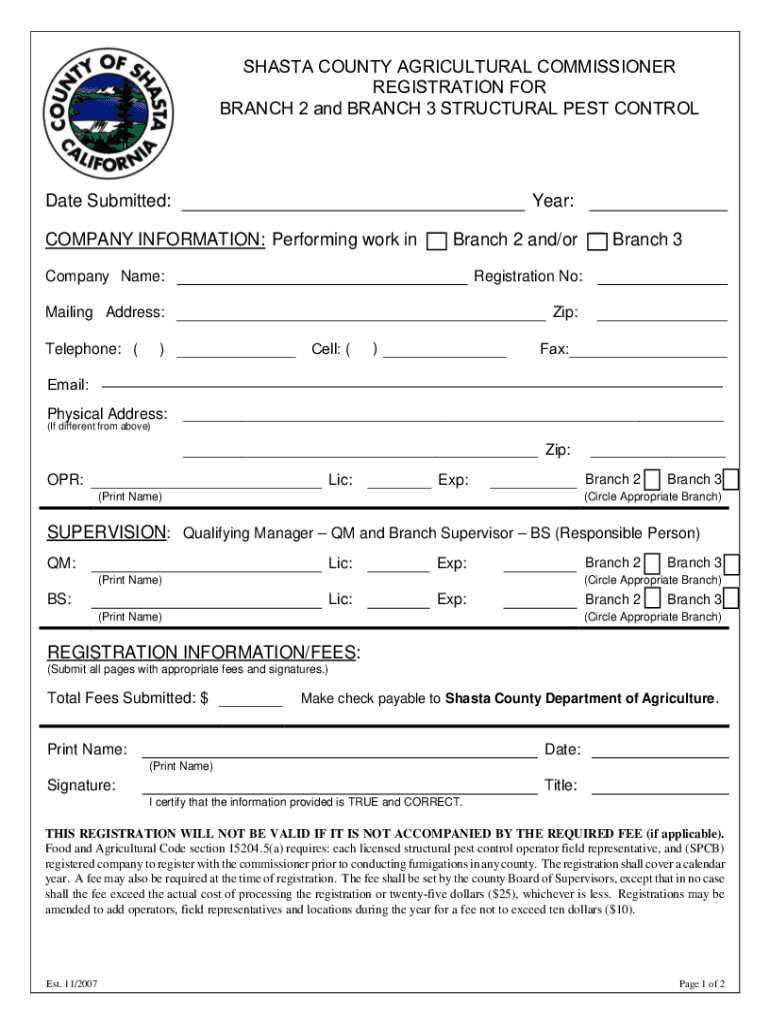 Shasta County Pesticide Business is not the form you're looking for?Search for another form here.