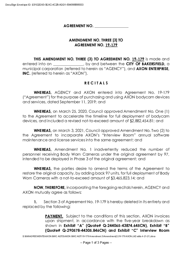 DocuSign Envelope ID: E91D2D500EAC4C28ADD1694996896933AGREEMENT NO. ___