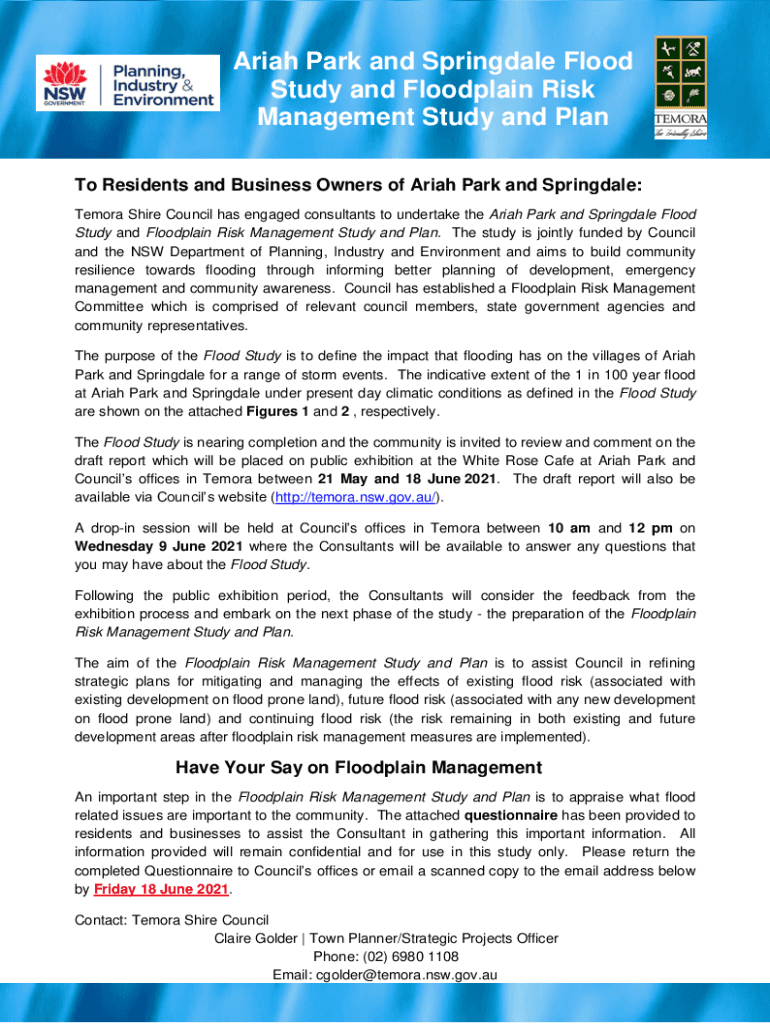 Get the free Ariah Park and Springdale Flood Study and Floodplain Risk ...