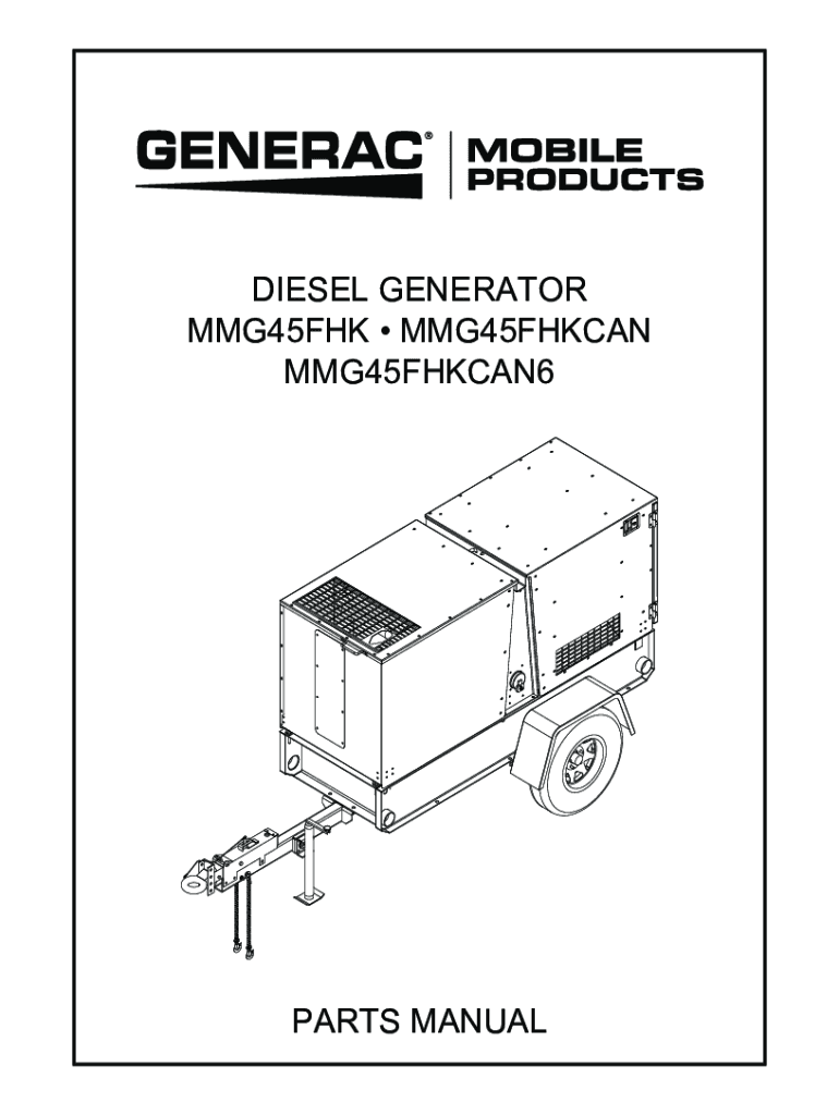 DIESEL GENERATOR MMG45FHK MMG45FHKCAN MMG45FHKCAN601405PARTS MANUALINTRODUCTION Before servicing this machine, make sure the engine start switch is turned to off O, the circuit breakers are open (off,