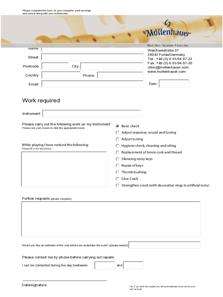 and send it along with your instruments. Mollenhauer Recorder Clinic