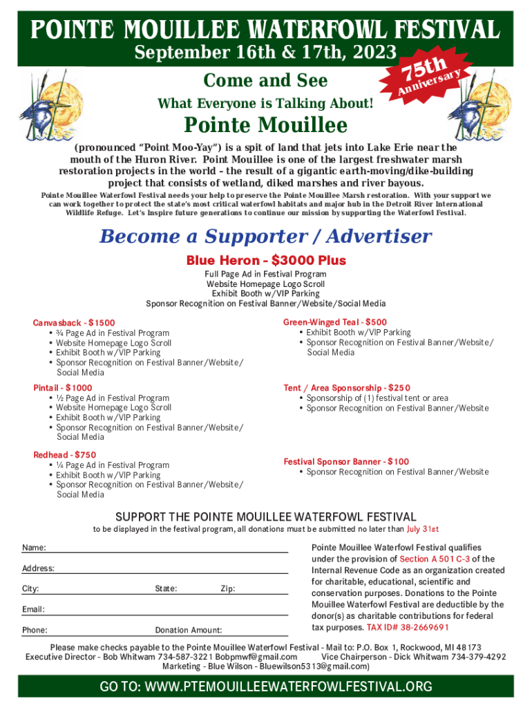 Get the free Welcome to Michigan's Pointe Mouillee Waterfowl Festival!