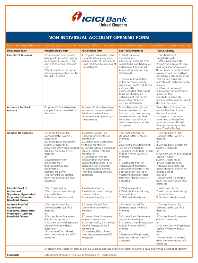 121,1\',9,\'$8/$&&281723(1,1*)250 \'RFXPHQWVUHTXLUHGIRUDFFRXQWRSHQLQJ SOHDVHQRWHEDQNPDUHTXHVWDGGLWLRQDOGRFXPHQWVWREHSURYLGHGLQVXSSRUWRIDQDSSOLFDWLRQWRRSHQDQDFFRXQW\'RFXPHQW7SH3URSULHWRUVKLS)LUP3DUWQHUVKLS)UP/LPLWHG&RPSDQLHV7UXVWV&KDULW,GHQWLW2I%XVLQHVV\'HFODUDWLRQESURSULHWRUDORQJZLWKSURRIRIWUDGLQJ
