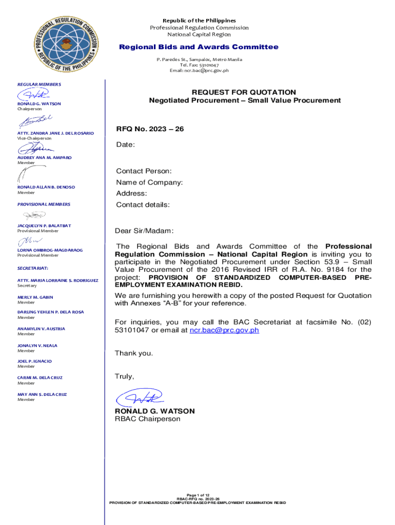 Republic of the Philippines Professional Regulation Commission National Capital RegionRegional Bids and Awards Committee P. Parades St., Sample, Metro Manila Tel. Fax: 53101047 Email: ncr.bac@prc.gov.ph