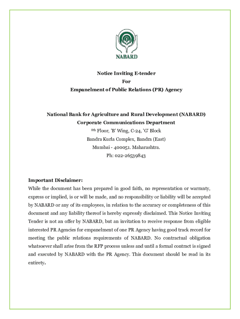Embankment of Public Relations (PR) AgencyNational Bank for Agriculture and Rural Development (NAB ARD)