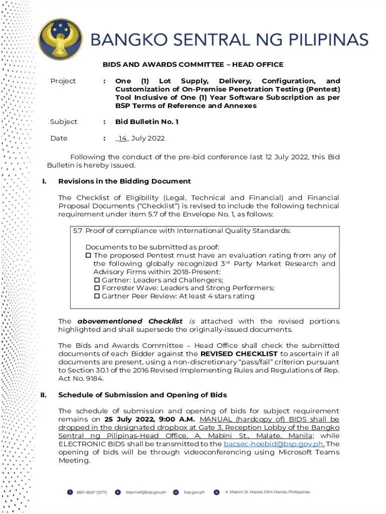 BIDS AND AWARDS COMMITTEE HEAD OFFICE Project:One (1) Lot Supply, Delivery, Configuration, and Customization of Premise Penetration Testing (Pertest) Tool Inclusive of One (1) Year Software Subscription