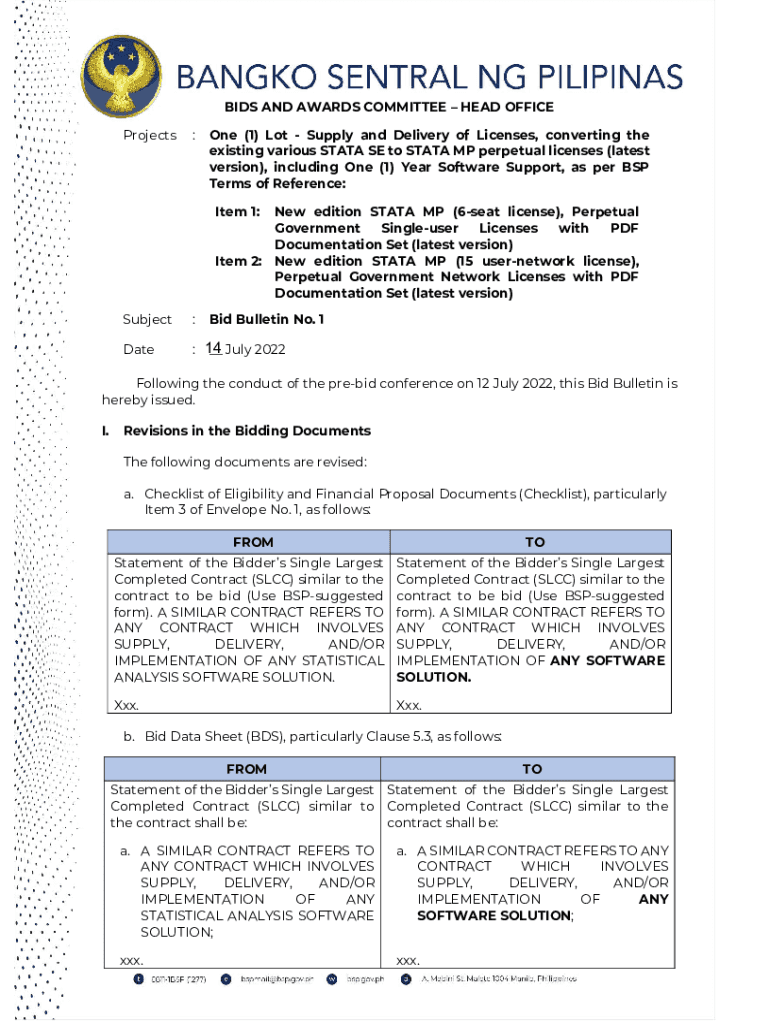 BIDS AND AWARDS COMMITTEE HEAD OFFICE Projects:One (1) Lot Supply and Delivery of Licenses, converting the existing various STAT ASE to STAT AMP perpetual licenses (the latest version), including