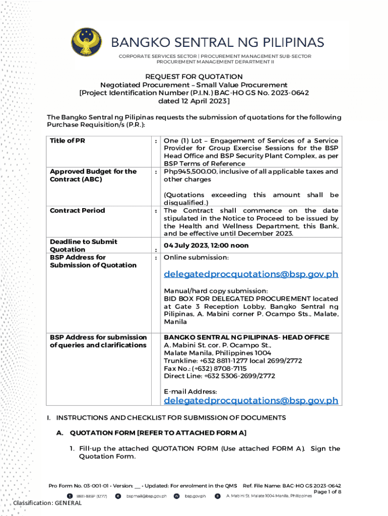 CORPORATE SERVICES SECTOR | PROCUREMENT MANAGEMENT SUBSECTION PROCUREMENT MANAGEMENT DEPARTMENT REQUEST FOR QUOTATION Negotiated Procurement Small Value Procurement [Project Identification Number