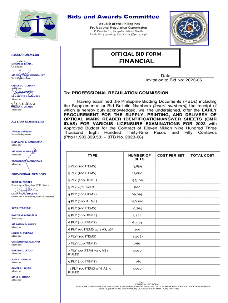Facsimile: 5 3100037 / email: bac@prc.gov.phOFFICIAL BID IRREGULAR MEMBERS:FINANCIALERWIN