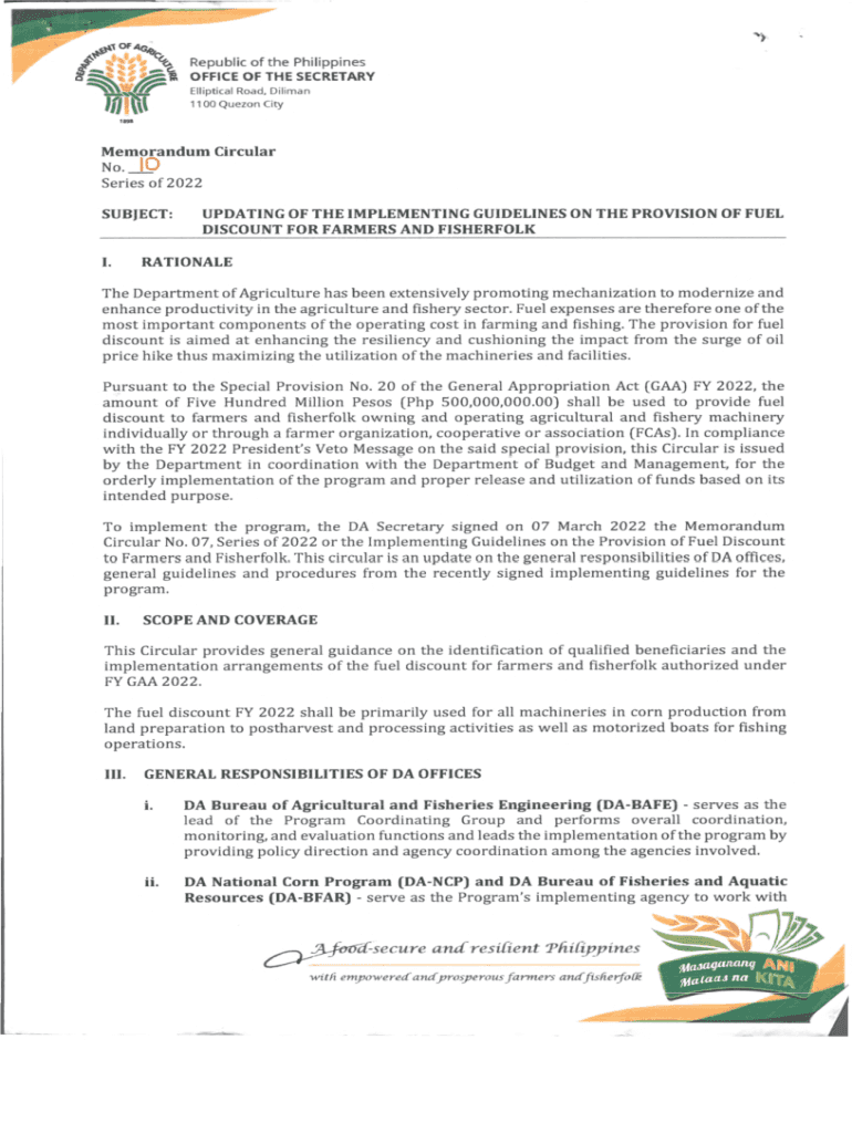 Republic of the PhilippinesOFFICE OF THE SECRETARY Elliptical Road, Dalian 1100 Quezon CityMemorandum Circular No. IQ Series of 2022 SUBJECT:I.UPDATING OF THE IMPLEMENTING GUIDELINES ON THE PROVISION