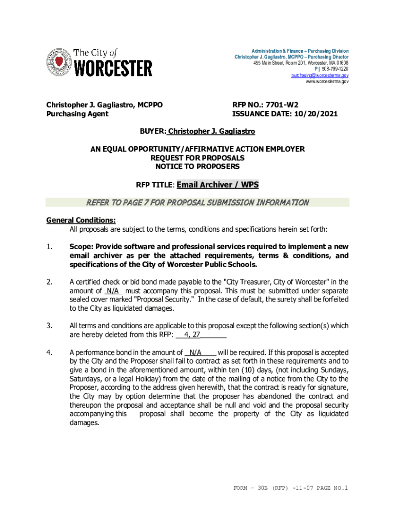 Administration & Finance Purchasing Division Christopher J. Gagliastro, MC PPO Purchasing Director 455 Main Street, Room 201, Worcester, MA 01608 P | 5087991220 purchasing@worcesterma.gov www.worcesterma.govChristopher