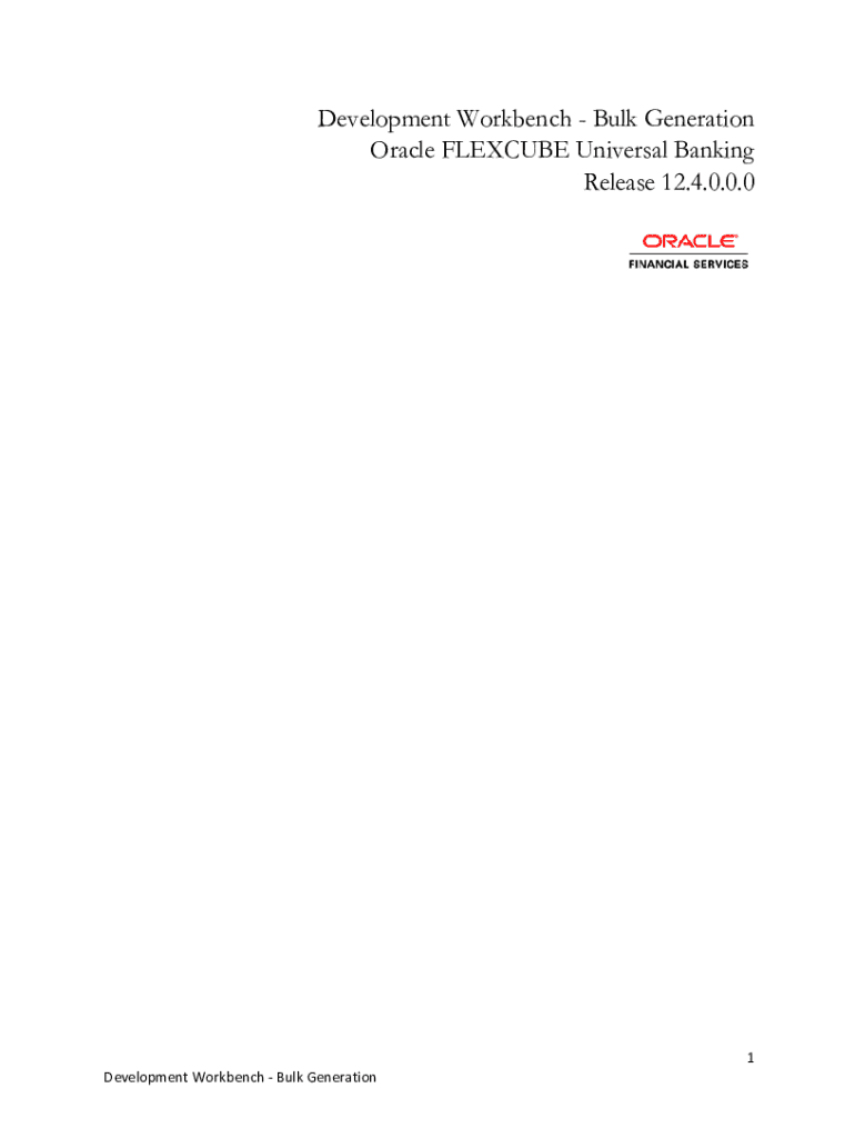 Development Workbench Bulk Generation Oracle FLEXIBLE Universal Banking Release 12.4.0.0.01 Development Workbench Bulk GenerationContents 1. Preface.................................................................................................................................................................3