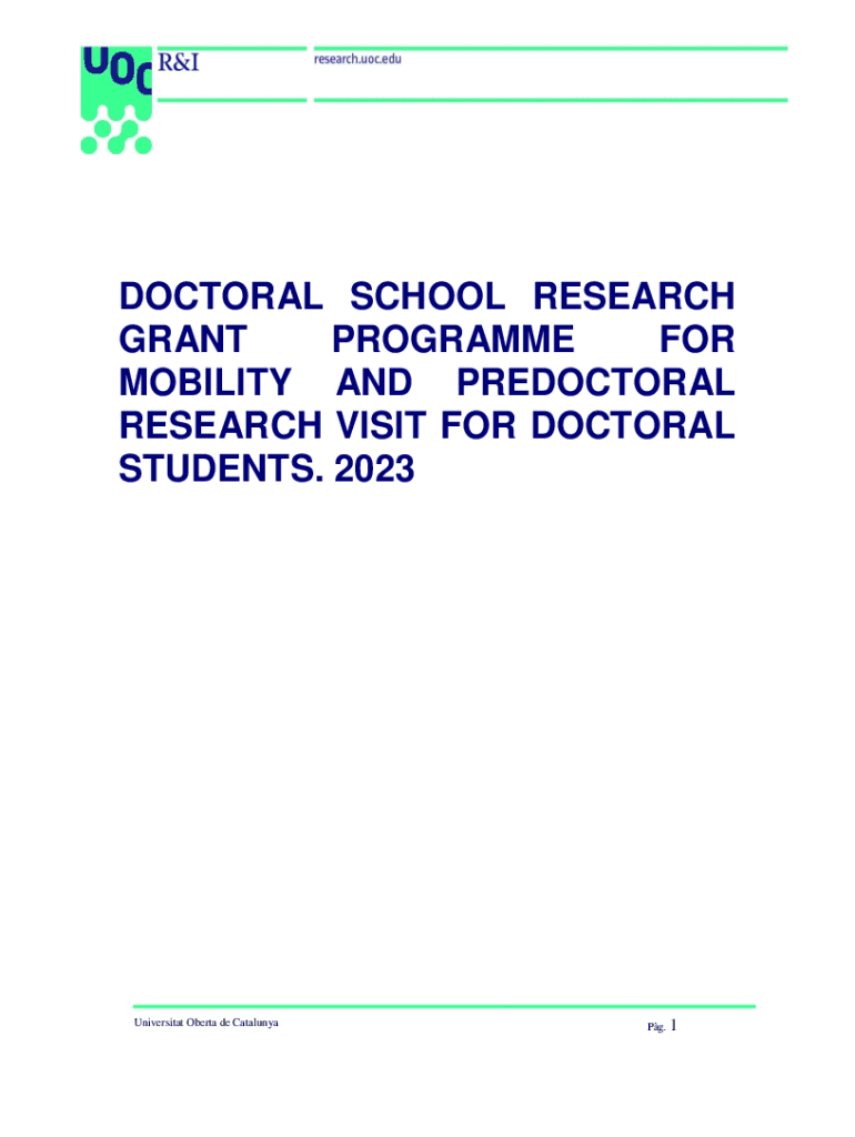 DOCTORAL SCHOOL RESEARCH GRANT Program FOR MOBILITY AND DOCTORAL RESEARCH VISIT FOR DOCTORAL STUDENTS. 2023Universitat Roberta de CatalunyaPg. 1A) DETAILS RELATING TO THE APPLICANT FOR GRANT 1. DOCTORAL