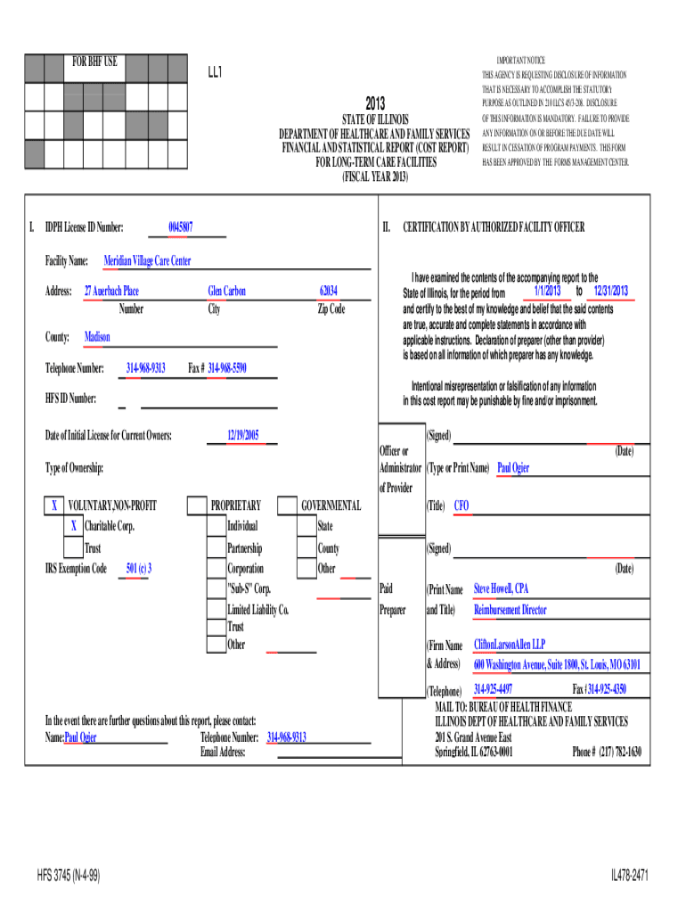 FINANCIAL AND STATISTICAL REPORT (COST REPORT)