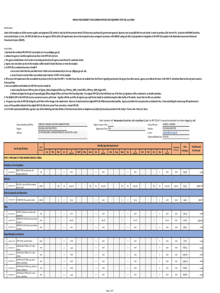 ANNUAL PROCUREMENT UNCOMMON SUPPLIES AND EQUIPMENT (APPOSE) 2019 FORM Introduction: Listed in this template are all the common supplies and equipment (CSE) carried in stock by the Procurement Service
