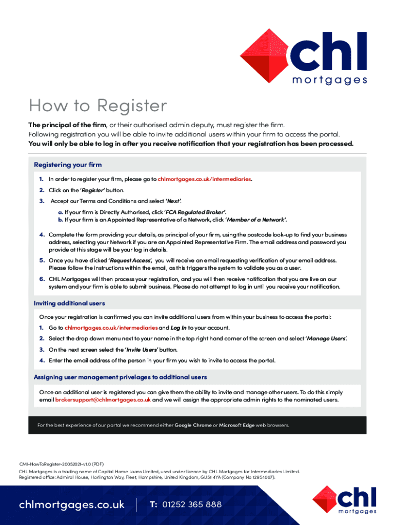 Get the free How to Register - CHL Mortgages