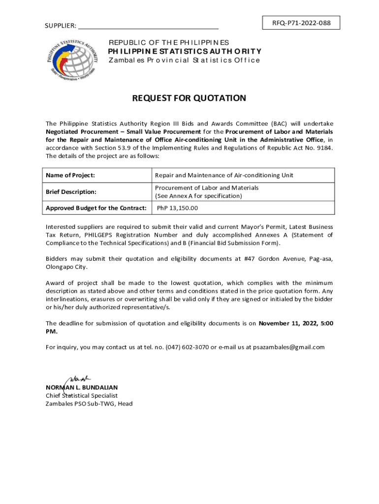 SUPPLIER: ___RFQP712022088REPUBLIC OF THE PHILIPPINESPHILIPPINE STATISTICS AUTHORITY