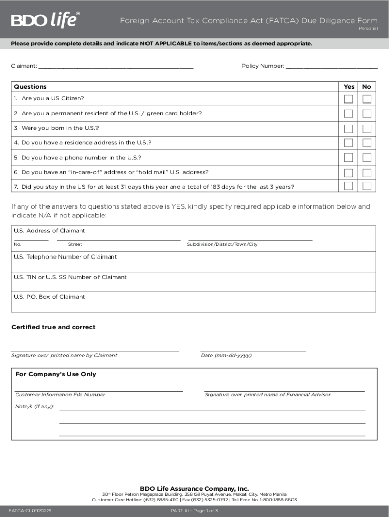 Get the free Foreign Account Tax Compliance Act (FATCA) Due ...