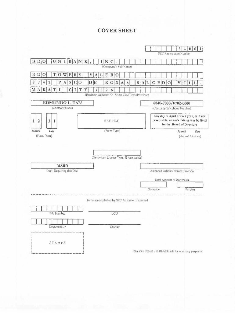 COVERSHEETI I I I l3l4lolo111 SEC Registration Number(Company\'s Full Name)IBID IOI ITIOIWIEIRIS I IVIAILIEIRIOI I I I I I I I I I I I I I I I I 1817 1411 1 IPIAISIEl0 1 DIE IRlolxlAlsl 151AILICIEIDl01