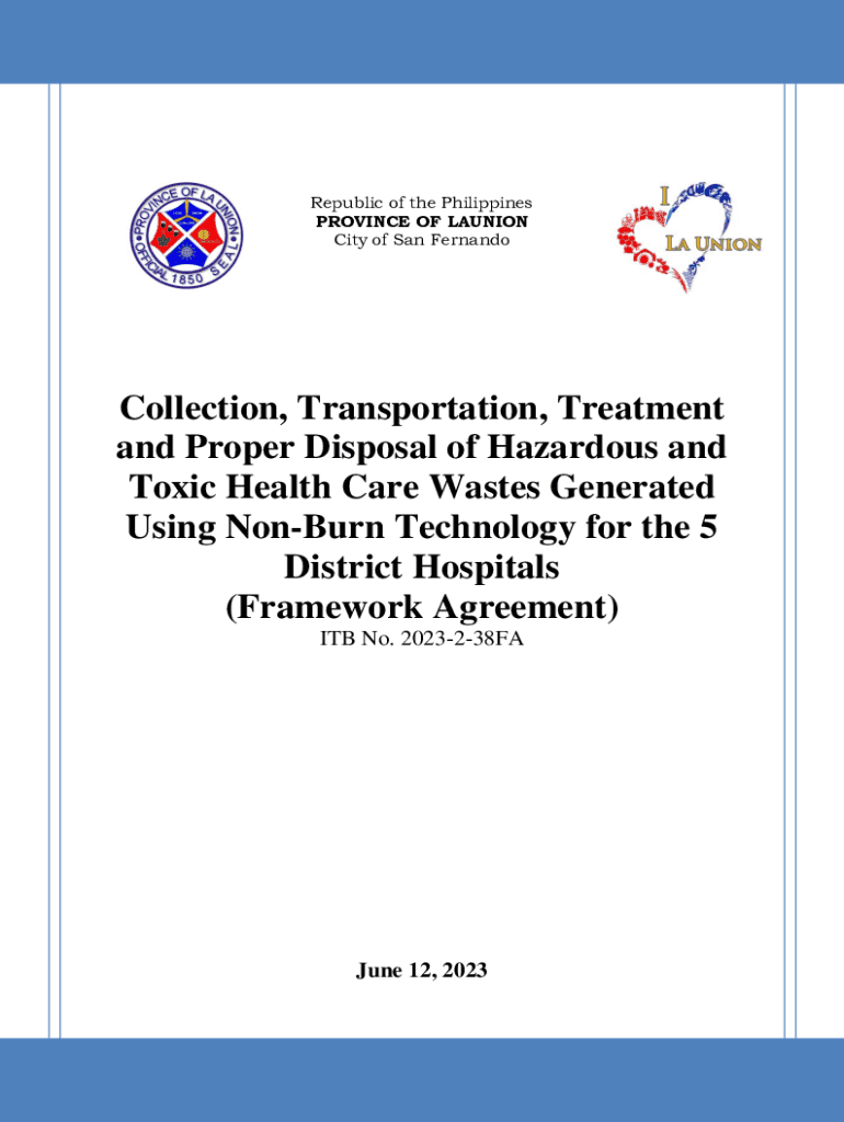 Republic of the Philippines PROVINCE OF Union City of San FernandoCollection, Transportation, Treatment and Proper Disposal of Hazardous and Toxic Health Care Wastes Generated Using Sunburn Technology