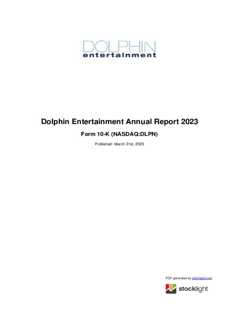 Dolphin Entertainment Annual Report 2023 Form 10K (NASDAQ:DPN) Published: March 31st, 2023PDF generated by stock light.counted STATES SECURITIES AND EXCHANGE COMMISSION Washington, D.C. 20549 Form
