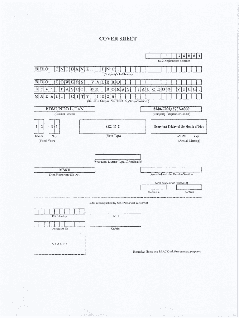 COVER SHEET I I I 13141()Poll SEC Registration. Allow luINIIIBIAINIKI,1 IrlNlcl1I I I I I I I 1r(Company\'s Full Name)Number I I I III alDlolITlolwlEIRls I Islam LjEIRlol 1 1 I 1 1 I I I 1 1 1 I 1