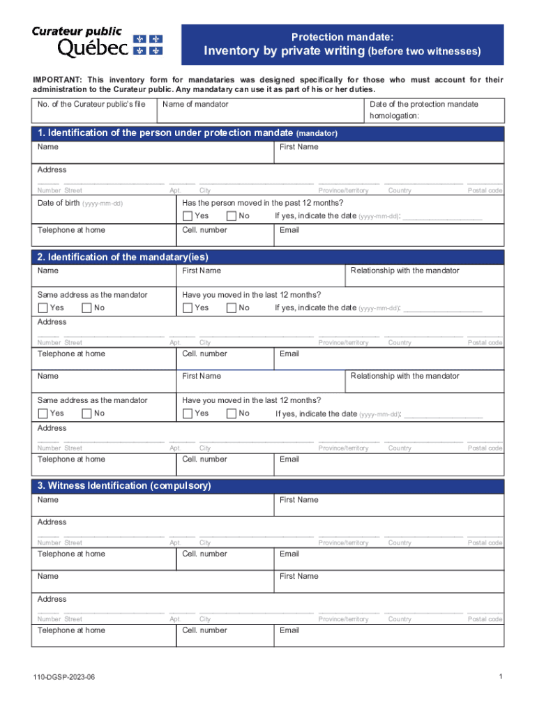 InstructionsPrintEraseProtection mandate: Inventory by private writing (before two witnesses) IMPORTANT: This inventory form for mandatories was designed specifically for those who must account for