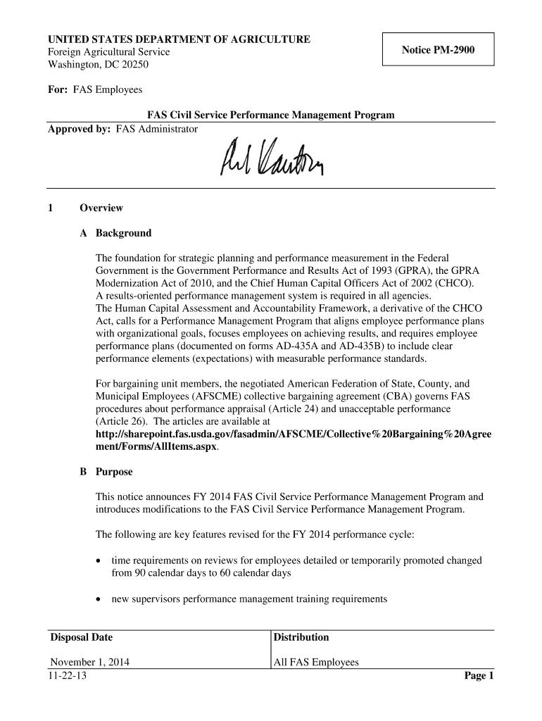 Washington, DC 20250Notice PM2900For: FAS Employees