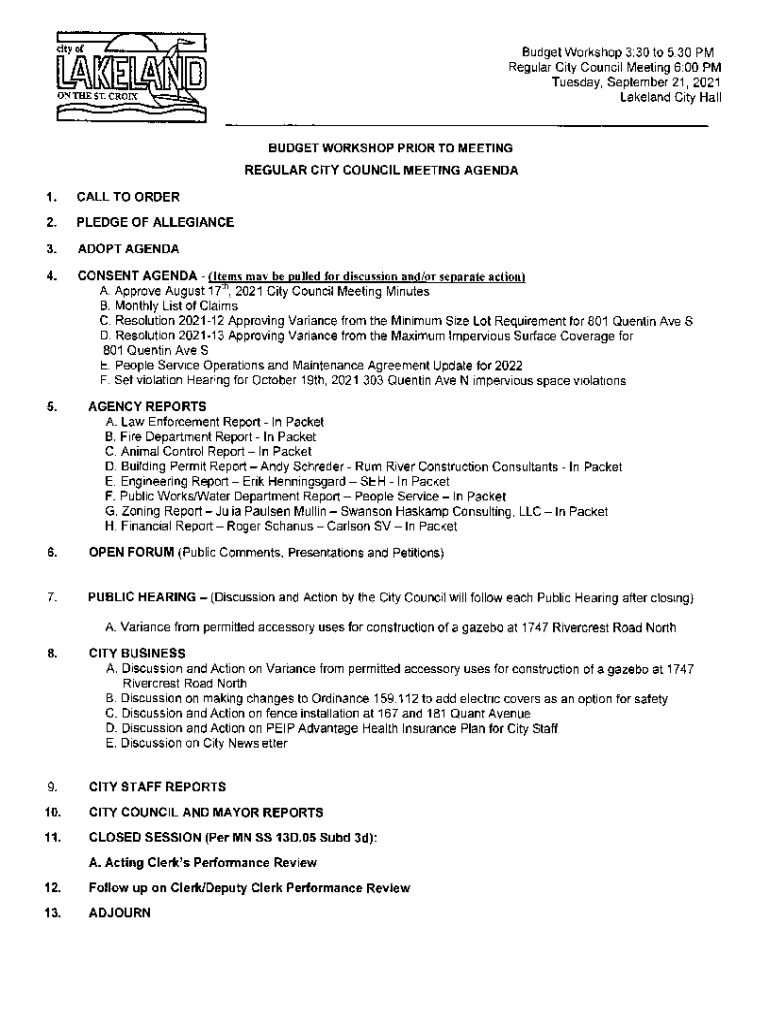 Get the free Budget Workshop 3:30 to 5:30 PM Regular City Council ... - ci lakeland mn