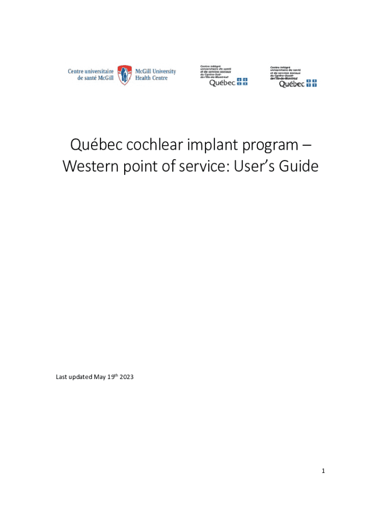 Quebec cochlear implant program Western point of service: Users Guidepost updated May 19th 20231Table of Contents INTRODUCTION ...............................................................................................................................
