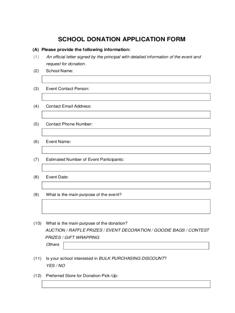 Anyone who wishes to make a donation to a school or educational institution may be required to fill out the school donation application form.