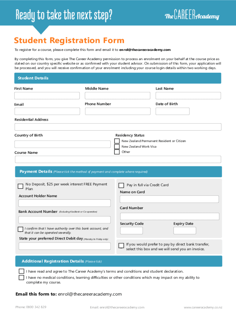 Ready to take the next step? Student Registration Form To register for a course, please complete this form and email it to enrol@thecareeracademy.com By completing this form, you give The Career Academy