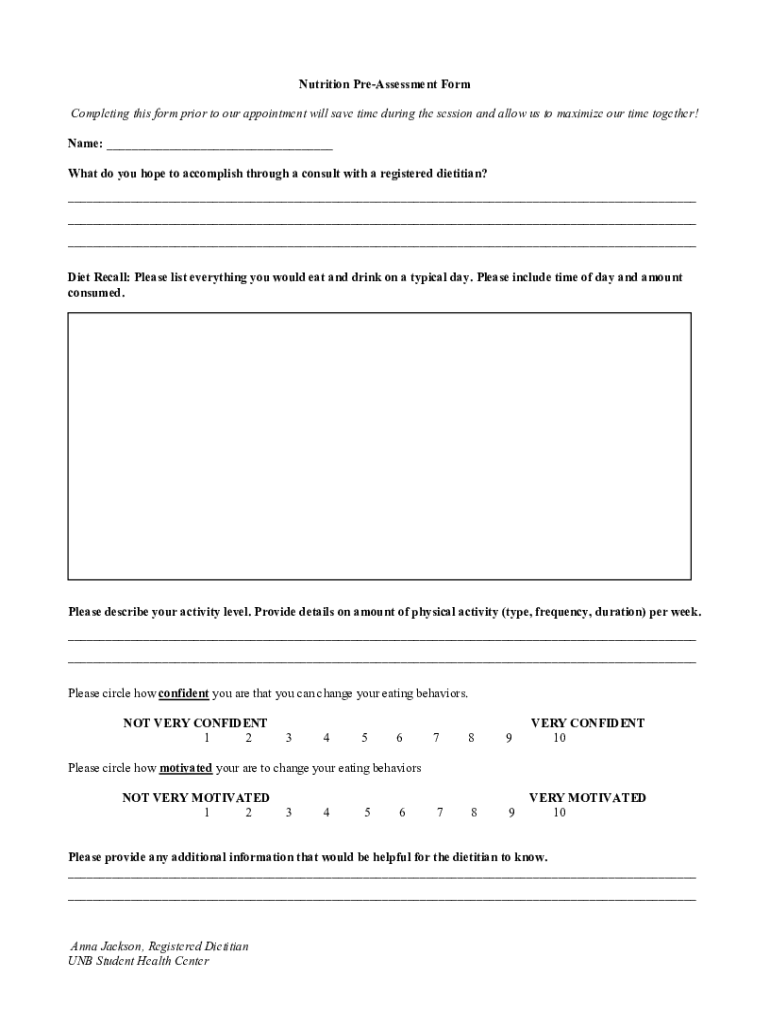 Get the free Nutrition Pre-Assessment Form