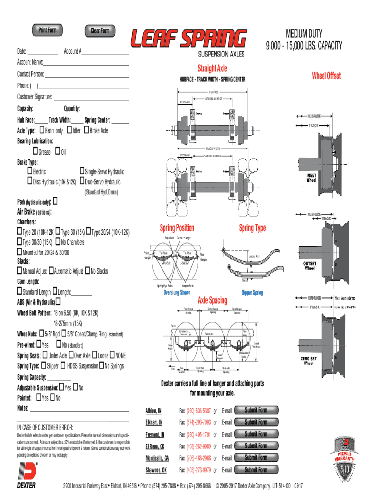 Print Formulae FormMEDIUM DUTY 9,000 15,000 LBS. CAPACITYDate:___Account #___ Account Name:___Straight Recontact Person:___ Phone: (Wheel OffsetHUBFACE TRACK WIDTH SPRING CENTER)___Customer Signature:___