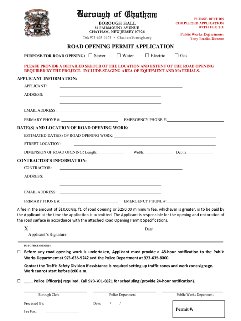 Get the free road opening permit application fillable form chatham borough