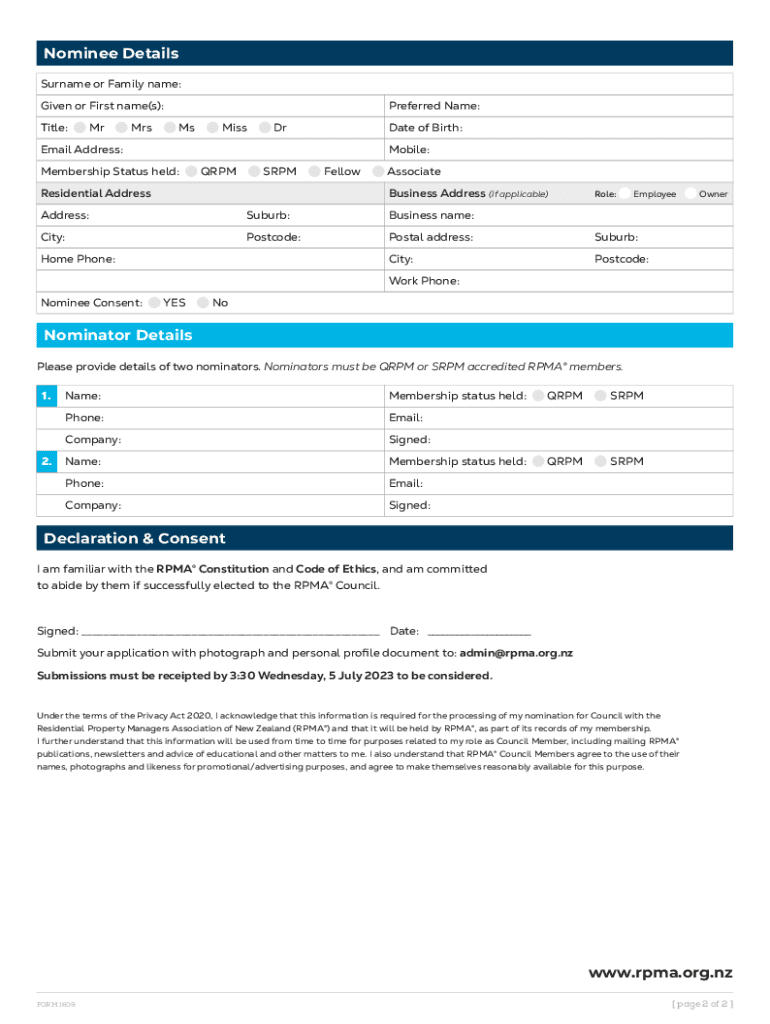 Council Member Nomination Form. The purpose of RPM is to raise industry standards for the benefit of members, property owners, and the public by providing education, certification, support and advocacy