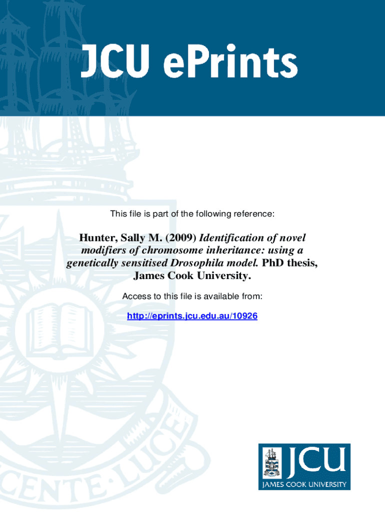 This file is part of the following reference:Hunter, Sally M. (2009) Identification of novel modifiers of chromosome inheritance: using a genetically sensitized Drosophila model. PhD thesis, James