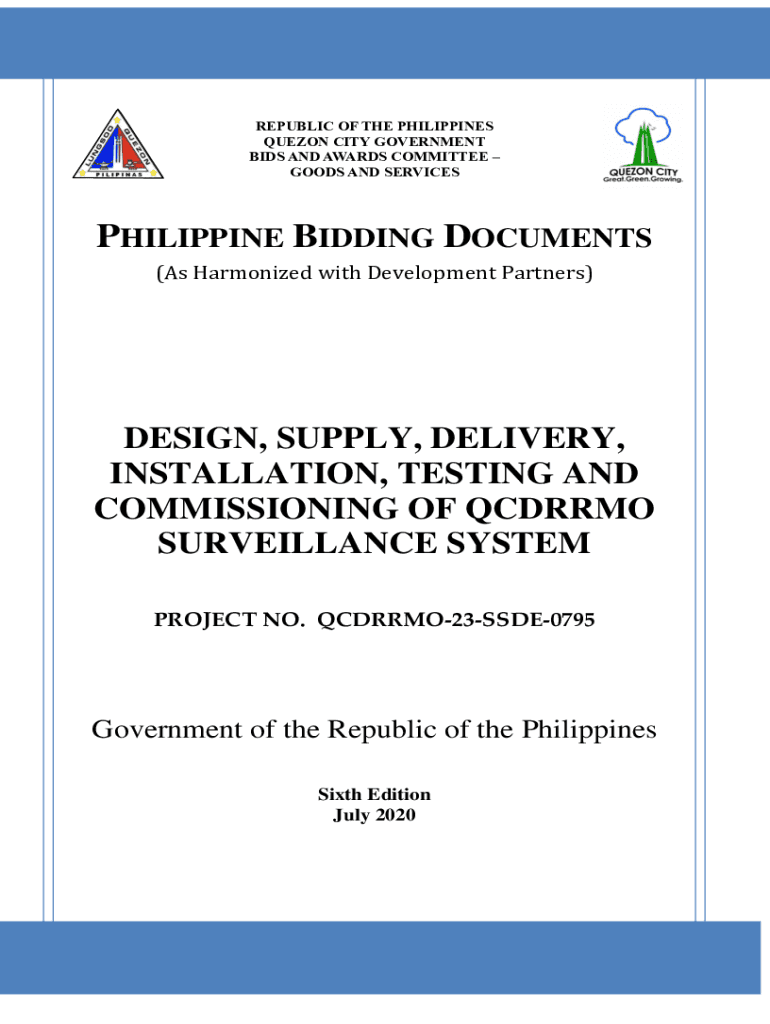 REPUBLIC OF THE PHILIPPINES QUEZON CITY GOVERNMENT BIDS AND AWARDS COMMITTEE GOODS AND SERVICESPHILIPPINE BIDDING DOCUMENTS (As Harmonized with Development Partners)DESIGN, SUPPLY, DELIVERY, INSTALLATION,