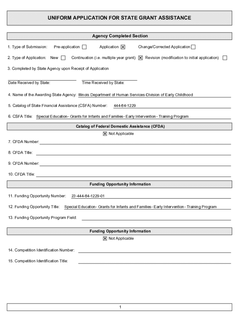 UNIFORM APPLICATION FOR STATE GRANT ASSISTANCE Agency Completed Section 1. Type of Submission: 2. Type of Application:Reapplication NewApplicationChange/Corrected ApplicationContinuation (i.e. multiple
