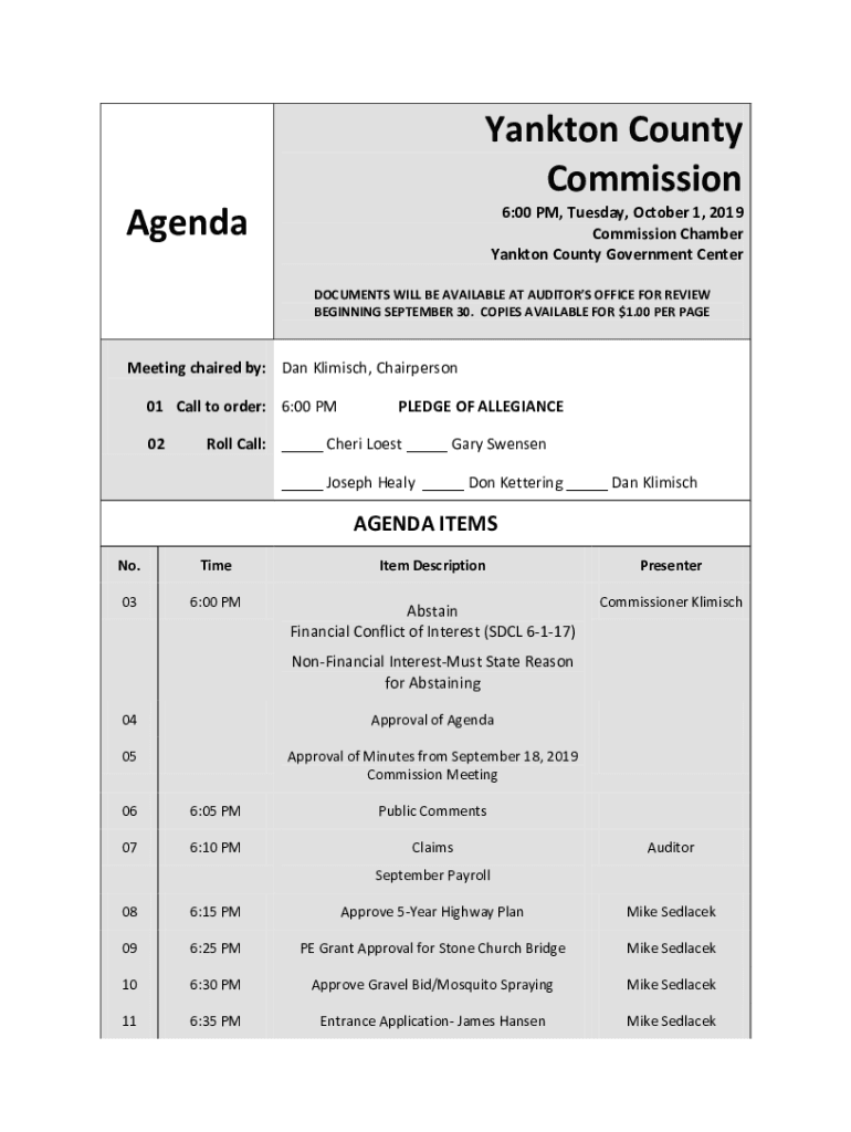 Fill out your agenda yankton county commission online with pdfFiller!