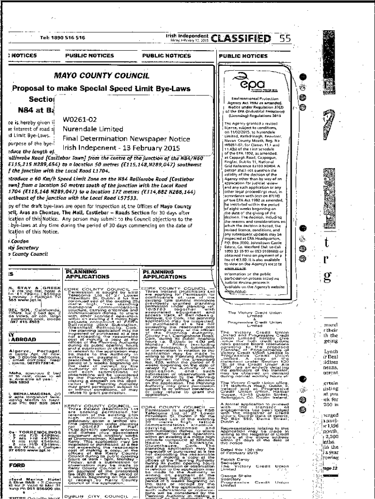 Irish Independent: 1890 516 516:NOTICES Friday. February 13, 2015PUlstlC NOTICES PUBLICPUBLlG NOTICESNOTICESMAYO COUNTY COUNCIL