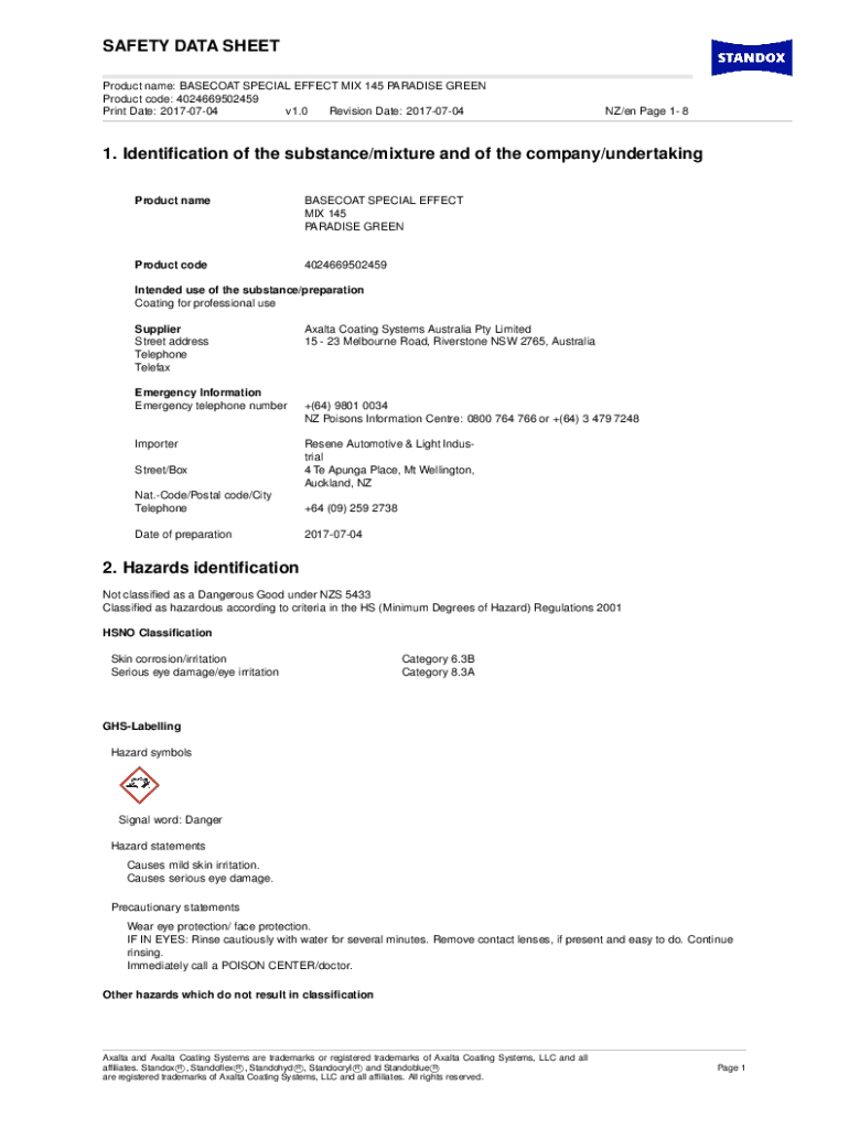 Revision Date: 20170704NZ/en Page 1 81. Identification of the substance/mixture