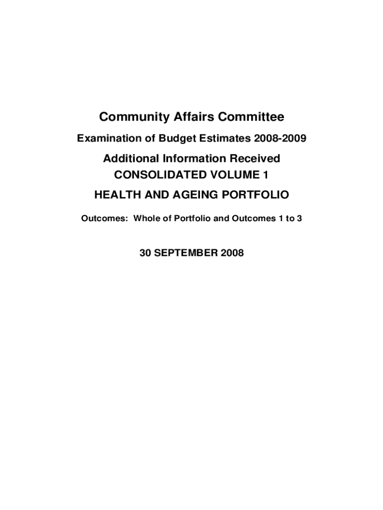 Community Affairs Committee Examination of Budget Estimates 20082009Additional Information Received CONSOLIDATED VOLUME 1 HEALTH AND Aging PORTFOLIO Outcomes: Whole of Portfolio and Outcomes 1 to