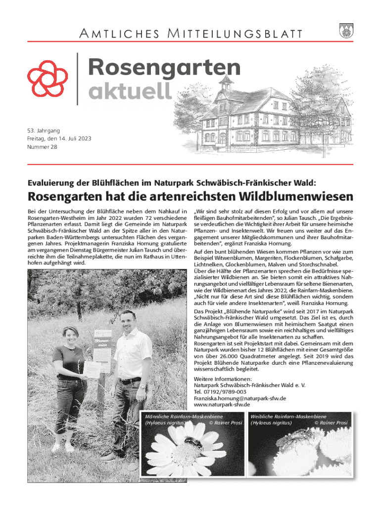 AM T L I C H E S M I T T E I L U N G S B L AT Cantrell 53. Charging Freytag, den 14. July 2023 Number 28Evaluierung her Blhflchen I'm Natural SchwbischFrnkischer Wald:Rosengarten hat die artenreichsten