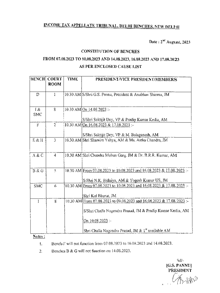 INCOME TAX APPELLATE TRIBUNAL. DELHI BENCHES. N E W DFT Hr Date : 2nd August 2023 CONSTITUTION OF BENCHES FROM 07.08.2023 TO 10.08.2023 AND 14.08.2023,16.08.2023 AND 17.08.2023 AS PER ENCLOSED CAUSE