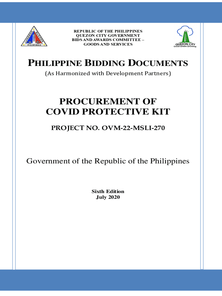REPUBLIC OF THE PHILIPPINES QUEZON CITY GOVERNMENT BIDS AND AWARDS COMMITTEE GOODS AND SERVICESPHILIPPINE BIDDING DOCUMENTS (As Harmonized with Development Partners)PROCUREMENT OF COVID-19 PROTECTIVE