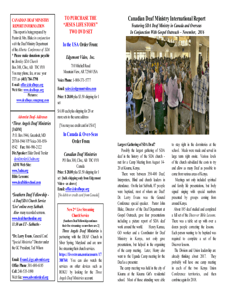 CANADIAN DEAF MINISTRY REPORT INFORMATION This report is being prepared by Pastor & Mrs. Blake in conjunction with the Deaf Ministry Department of the Alberta Conference of SDA * Please make donations